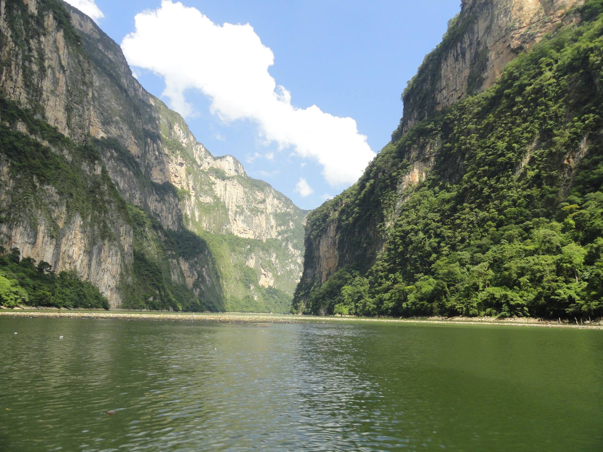 El cañón consiste en un imponente acantilado que se eleva sobre el cauce del río Grijalva. Sus muros, alcanzan los más de 1000 metros de altura.
